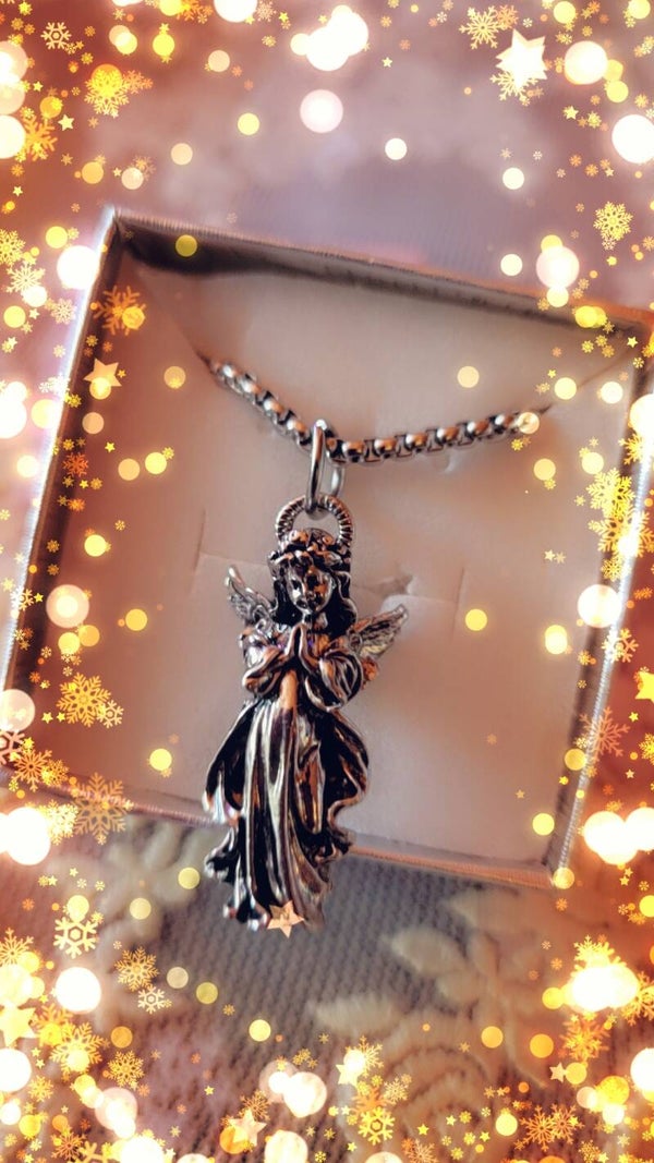 Nouveaux....Magnifique Chaîne Serpentine de 24 pouces avec un Pendantif Ange Fille avec Mains Joint