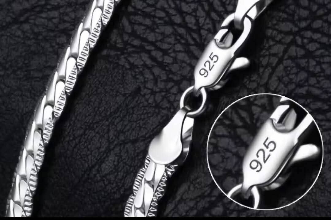 Magnifique Chaîne de 22 pouces et 6mm de large de couleur argent.