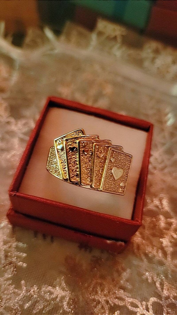 Magnifique Bague Jeux de Cartes en Cuivre pour Femme ou Homme Finition Laiton Durable. Couleur Or. Avec Strass.